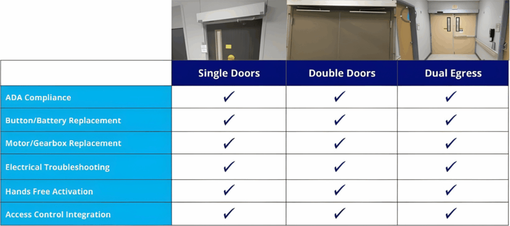 Compliance & Peace of Mind: Â We keep your doors safe, reliable, and compliant, protecting your tenants, visitors, and assets.Â